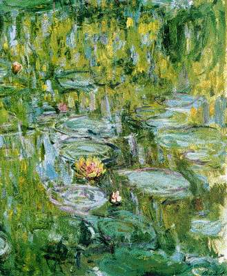 A partir des années 1910 et jusqu'à la mort du peintre en 1926, le jardin et son bassin, en particulier, deviennent son unique source d'inspiration. A partir des années 1910 et jusqu'à la mort du peintre en 1926, le jardin et son bassin, en particulier, deviennent son unique source d'inspiration.. Cet ensemble unique, véritable sixtine de l'impressionnisme, selon l.